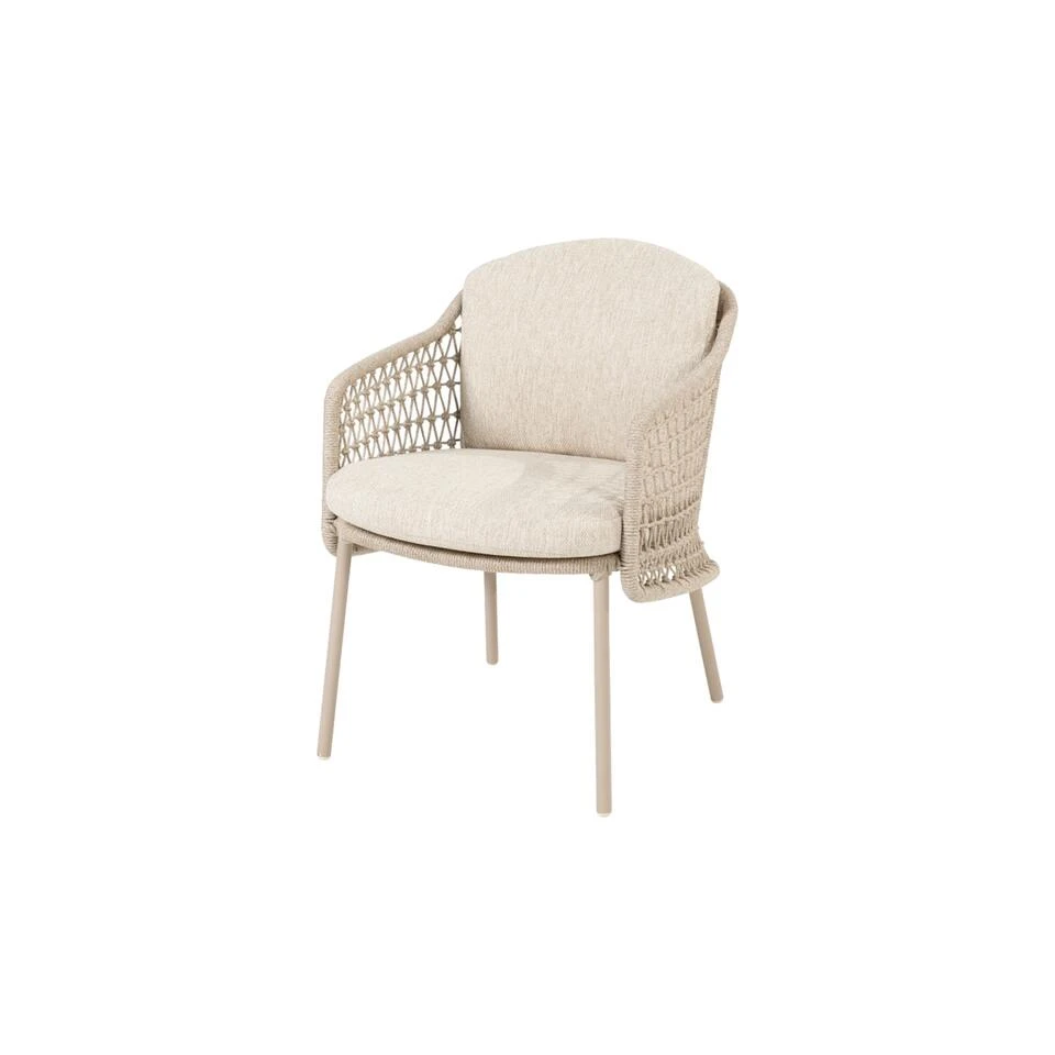 Even wat anders? Dat bereik je met deze Puccini dining tuinstoel van 4 Seasons. Deze tuinstoel is volledig gehuld in een latte kleur. Deze kleur is het beste te vergelijken met een zand kleur, zacht en toch heel warm. Het frame en rope patroon zijn in deze mooie kleur gemaakt. Hierdoor past deze tuinstoel perfect bij een houten tuintafel. De comfortabele kussens en hoge rugleuning zorgen voor een hoog zitcomfort. Zo hou jij het de hele avond wel vol op deze stoelen! Het verrassende rope patroon zorgt er ook nog eens voor dat deze stoel een luxe uitstraling krijgt. Wil jij deze unieke stoel ook in jouw tuin zien stralen? Bestel dan direct online! Â