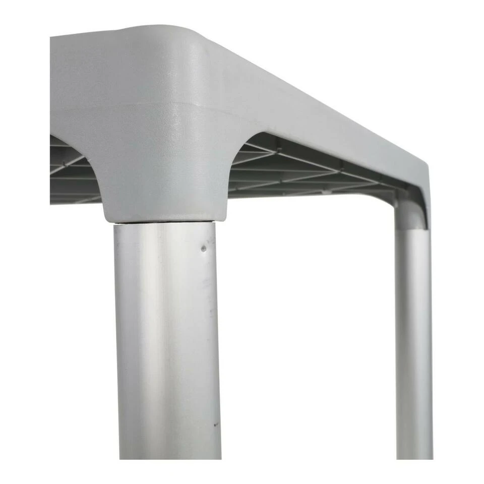 Met deze Bella terrastafel voegt u gegarandeerd een vrolijke en moderne sfeer toe aan vrijwel iedere buitenruimte. Deze tafel bestaat uit vier aluminium poten en een grijs kunststof tafelblad. Dankzij het gebruik van deze materialen is deze tafel onderhoudsarm. Deze tafel is tevens eenvoudig uit elkaar te halen, waardoor hij gemakkelijk kan worden opgeborgen. Terrastafel Bella is ook verkrijgbaar in het wit. Combineer deze terrastafel ook met de matchende Bella terrasstoelen, welke verkrijgbaar zijn in acht verschillende kleuren!