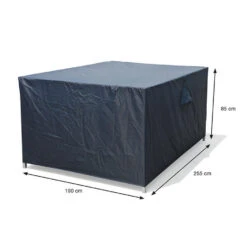 Ben je op zoek naar een beschermhoes voor jouw tuinset? Deze prettige tuinsethoes van kwaliteitsmerk Garden Impressions zorgt ervoor dat je langer plezier hebt van je tuinset. Om de levensduur van je tuinset te verlengen, raden wij aan om deze af te dekken in de wintermaanden. De tuinset beschermhoezen van Garden Impressions zijn gemaakt van PVC met een ademende coating. Deze coating zorgt ervoor dat hoes waterbestendig is. De hoes is niet volledig waterdicht, maar waterafstotend. Het is een flexibele ademende coating, waardoor de hoes in de wintermaanden ook nog flexibel blijft. Doordat de tuinsethoes niet volledig waterdicht is, is aan te raden om een afstand te creëren tussen de meubelen en de hoes. Het water kan er dan gemakkelijker afstromen en de meubelen kunnen niet verstikken. De beschermhoes is voorzien van ventilatie driehoeken zodat het tuinmeubel kan ademen. De tuinsethoes kan gemakkelijk om de tuinset worden bevestigd. Op alle hoeken zit onderaan een elastieken band om de hoes strak te houden. We raden je aan om de tuinkussens niet onder de hoes te laten liggen. Mochten de kussens al nat zijn geworden, is dat niet erg, maar zorg er wel voor dat ze droog worden opgeborgen. De tuinsethoes met afmeting 255x190xH85 cm.