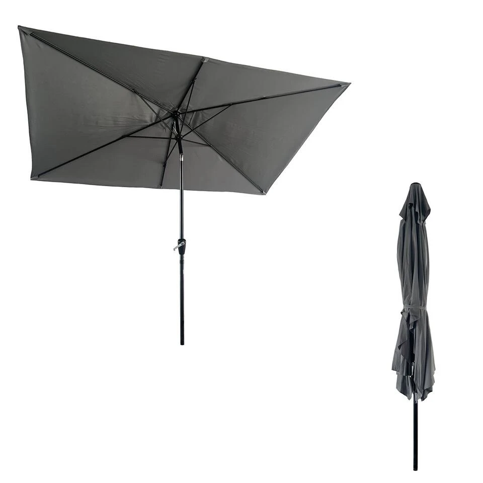 Met zijn rechte stok en rechthoekige luifel zal de HAPUNA parasol snel uw favoriete zomerparasol worden. Het elegante ontwerp van de parasol past perfect bij uw buitenmeubilair, ongeacht de stijl ervan. Het grote formaat, de kantelbare stok en het polyester doek houden u de hele dag uit de zon. Hij heeft ook een praktische slinger om hem gemakkelijk te openen.