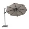 Met zijn klassieke, elegante lijnen beschermt onze OAHU 350 cm parasol je tegen de zonnestralen en kun je in alle rust genieten van je tuin, terras of balkon… Met zijn stevige stalen frame en praktische zwengel heeft onze parasol alles wat je nodig hebt. Vergeet niet om verzwaarde of opvulbare platen toe te voegen om je excentrische parasol stevig op zijn plaats te houden.