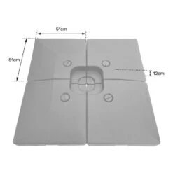 Wind met stormkracht? Geen nood, met onze geballaste platen blijft uw parasol op zijn plaats (vergeet niet hem te sluiten!). Omdat de plug aan de bovenkant van de platen zit, raden we u aan ze te vullen met water in plaats van zand.