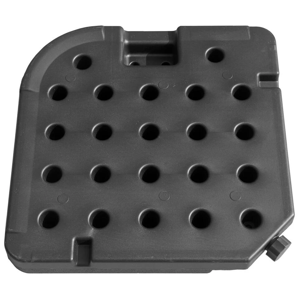 Stormkracht? Geen nood, met QUIBERON ballastplaten (te vullen met water of zand) blijft uw parasol op zijn plaats (denk er wel aan om hem te sluiten).