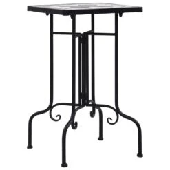 Het tuintafeltje heeft een weerbestendig mozaïeken tafelblad en elegant gebogen poten. Hij is een blikvanger in je tuin, balkon, terras, enz.