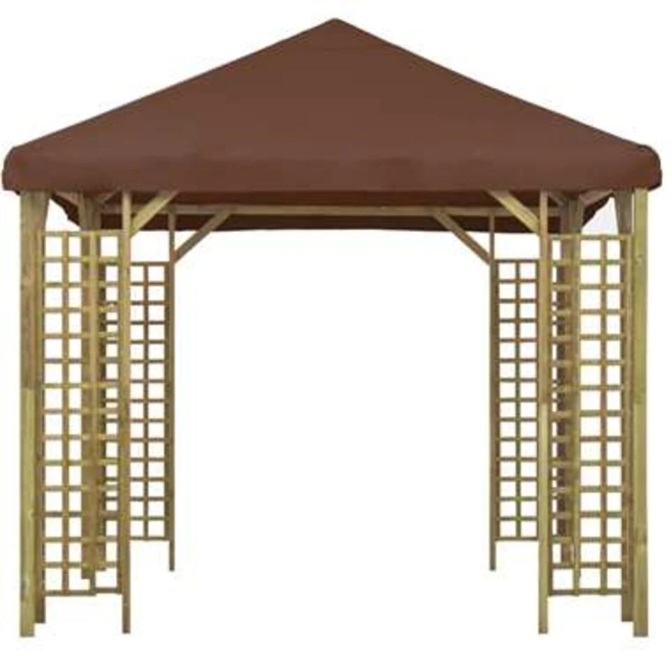 Het dak is gemaakt van 100% polyester met PVC-coating en beschermt je tegen de schittering en schadelijke uv-stralen van direct zonlicht. Het is water- en stofbestendig. De luifel heeft een massieve en robuuste grenenhouten constructie met decoratieve vierkante details, waardoor hij stevig en opvallend is. Het frame is sterk, stabiel en slijtagebestendig. Dit product is eenvoudig te monteren.